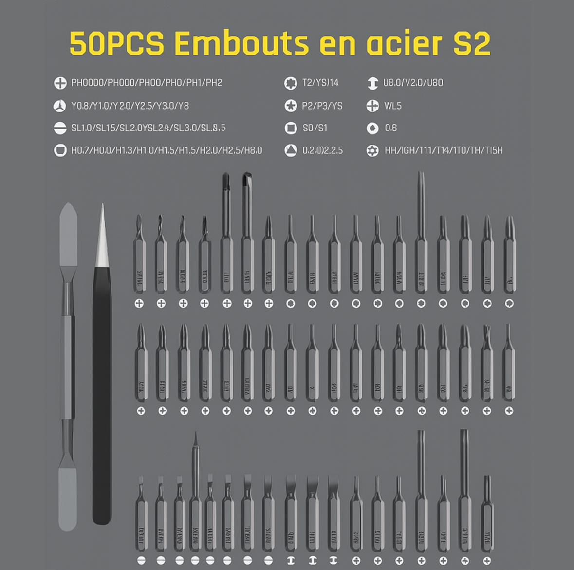 - 50x Embouts de Précision en Acier S2